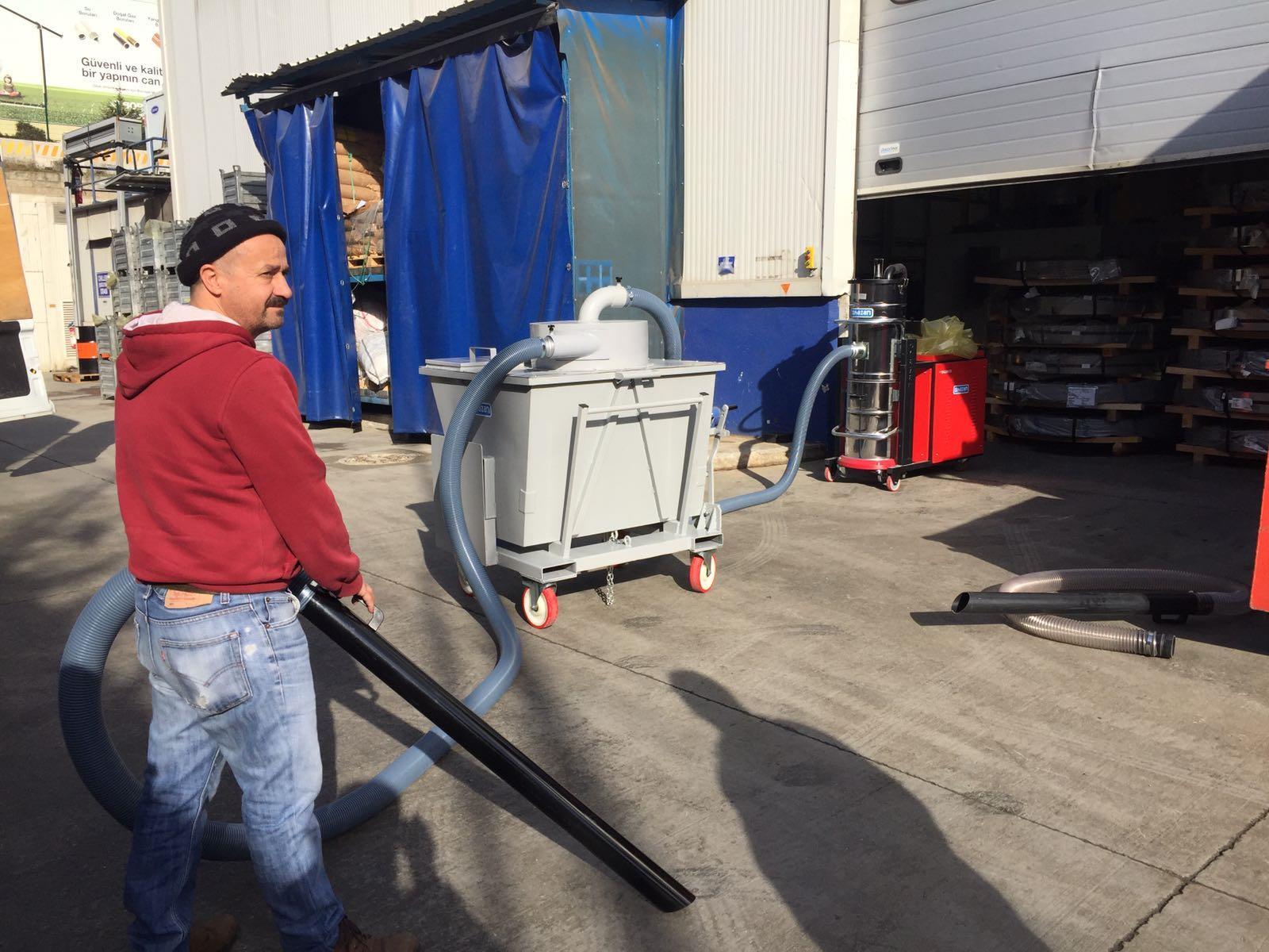 Üretim ve imalat esnasında çıkan çapak temizliği, toz toplama, metal talaşların emdirilmesi işinde, sürekli çalışma gerektiren durumlarda, uzun hortum gereksinimlerinde, kalıp temizliğinde, pano temizliğinde, kumaş kırpıntılarının vakumlanarak toplanmasında, sunta mdf tozlarının temizliğinde, ve genel temizlik için kullanacağını endüstriyel tip vakum makinalarıdır.